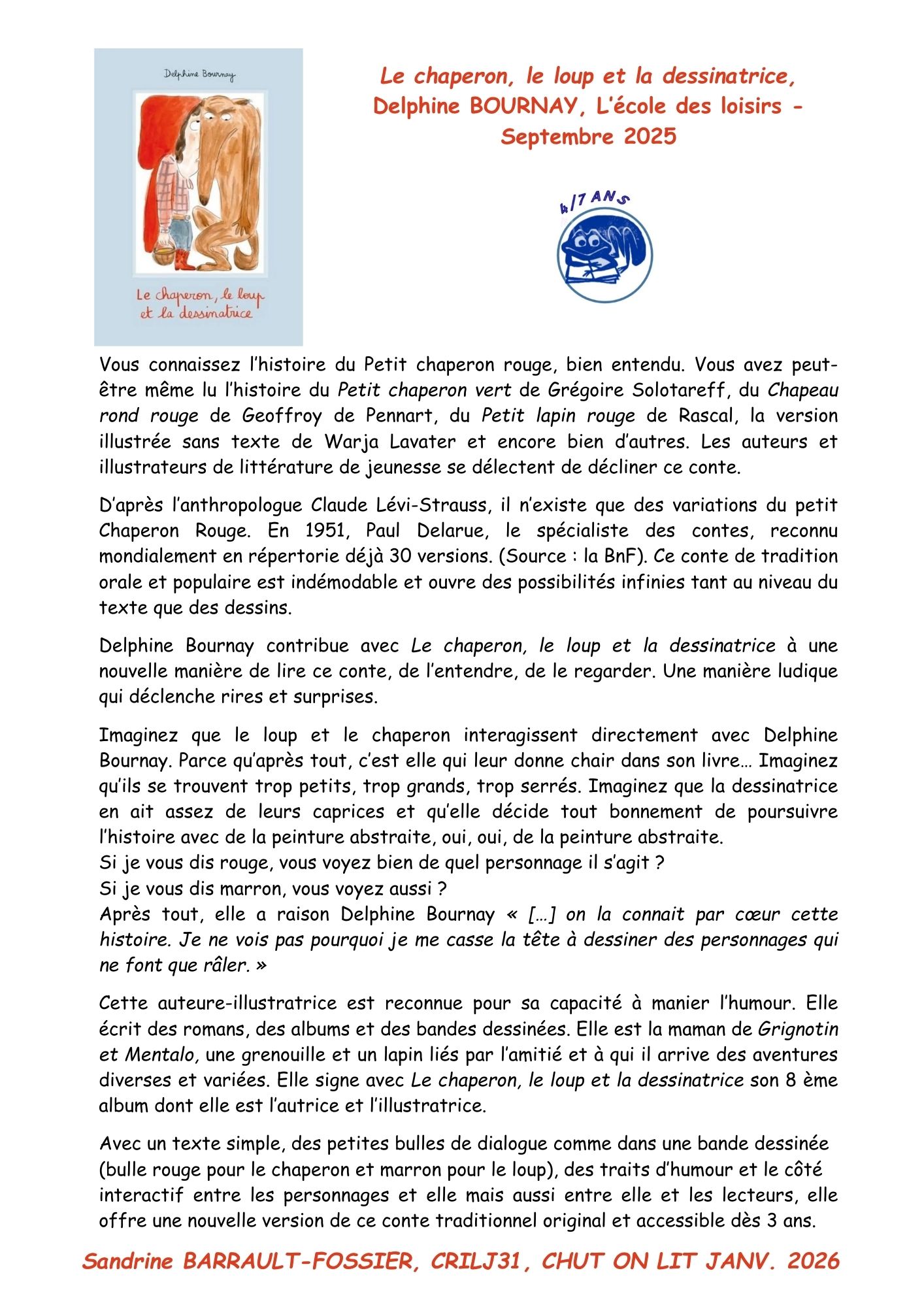 CHRONIQUE : Le chaperon, le loup et la dessinatrice