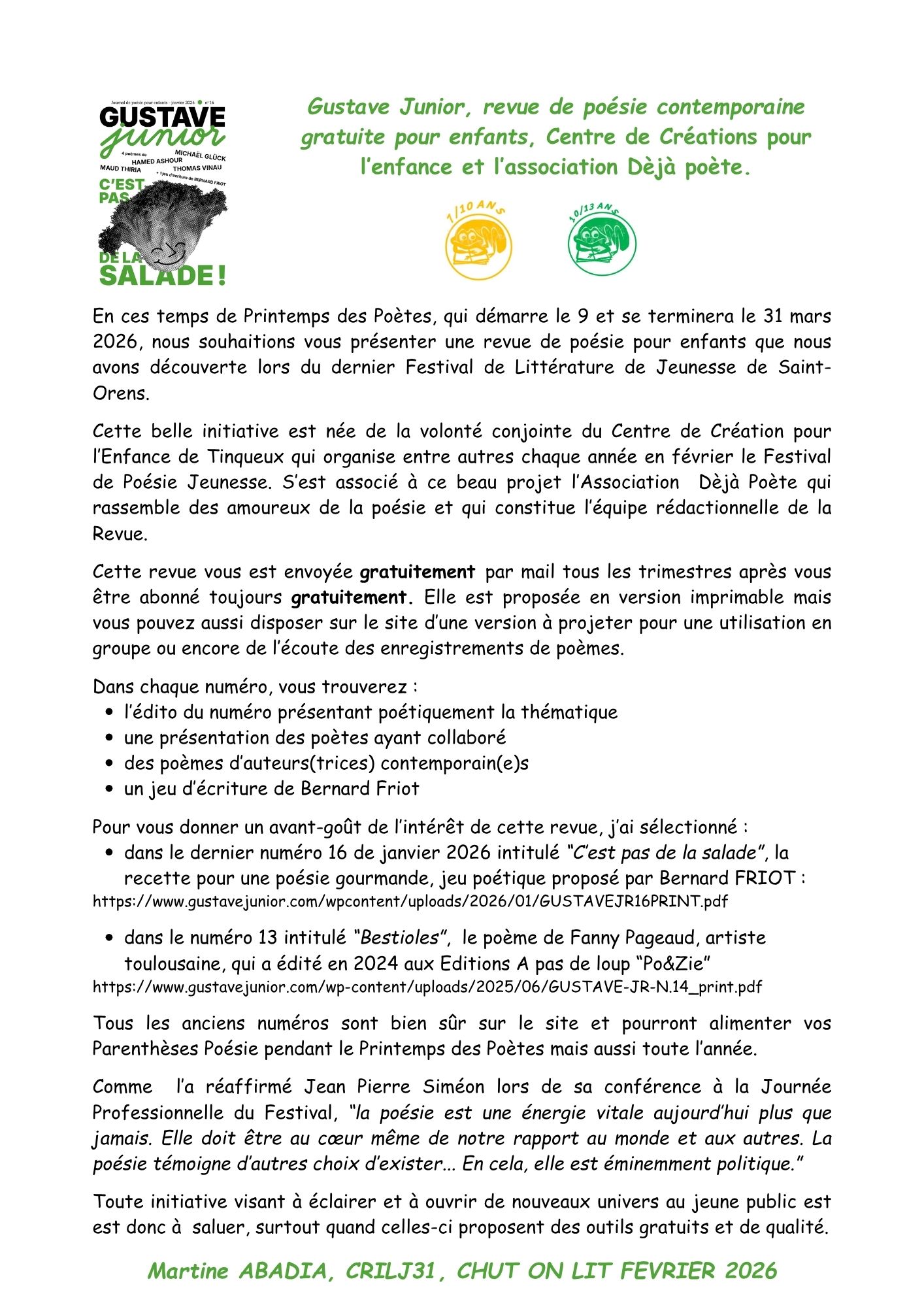 CHRONIQUE : Une revue de poésie : Gustave Junior