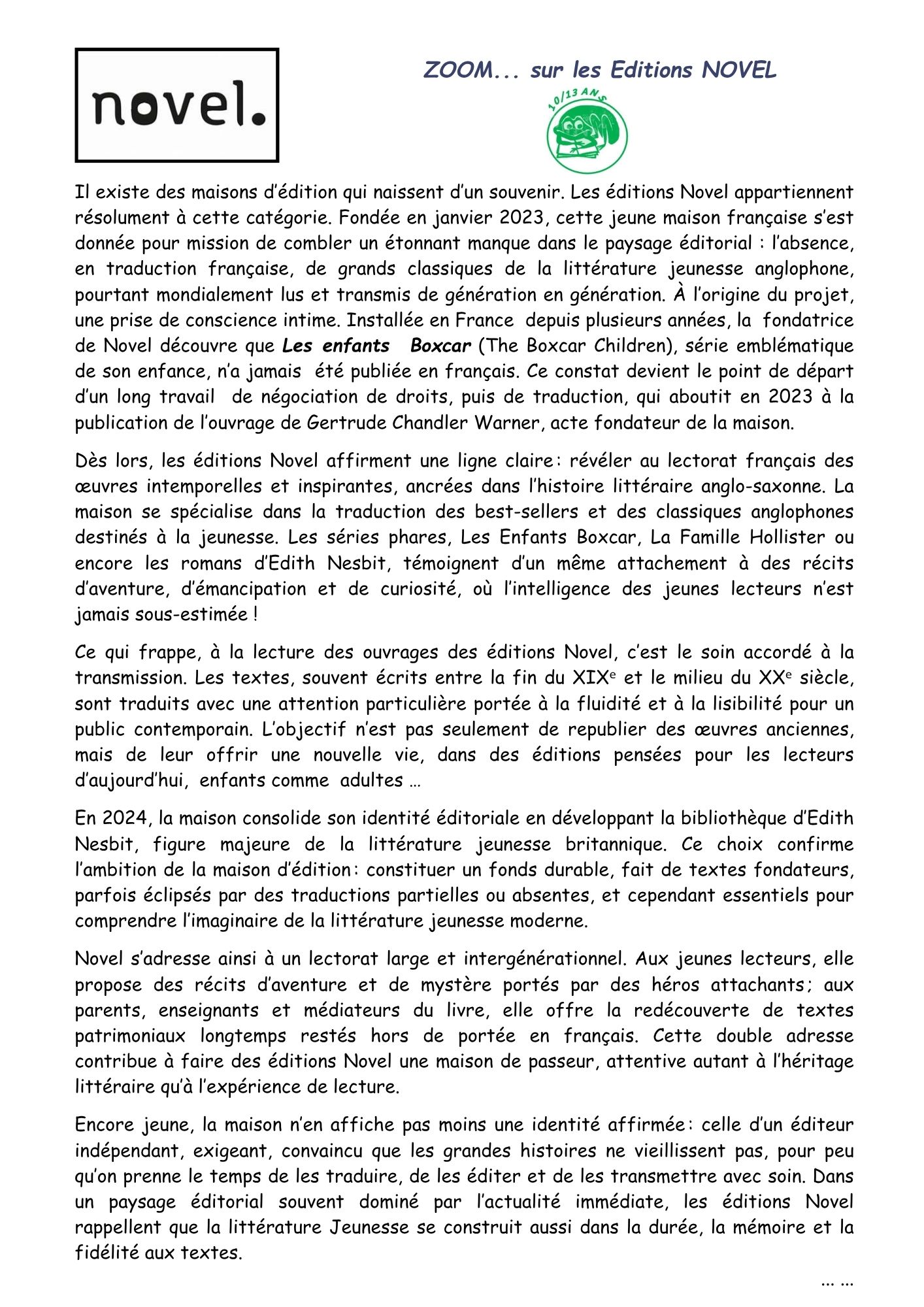 CHRONIQUE : Zoom sur les éditions NOVEL