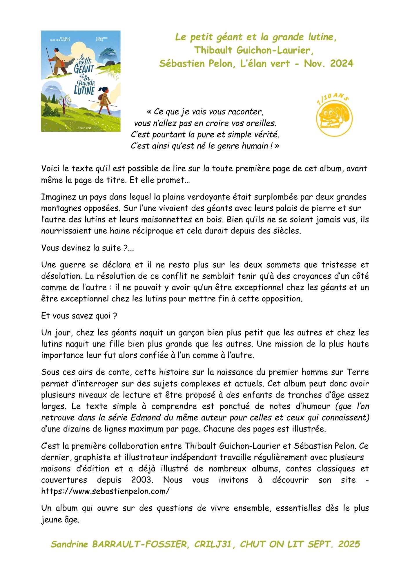 Marqué avec Chroniques, chut on lit, Le petit géant et la grande lutine