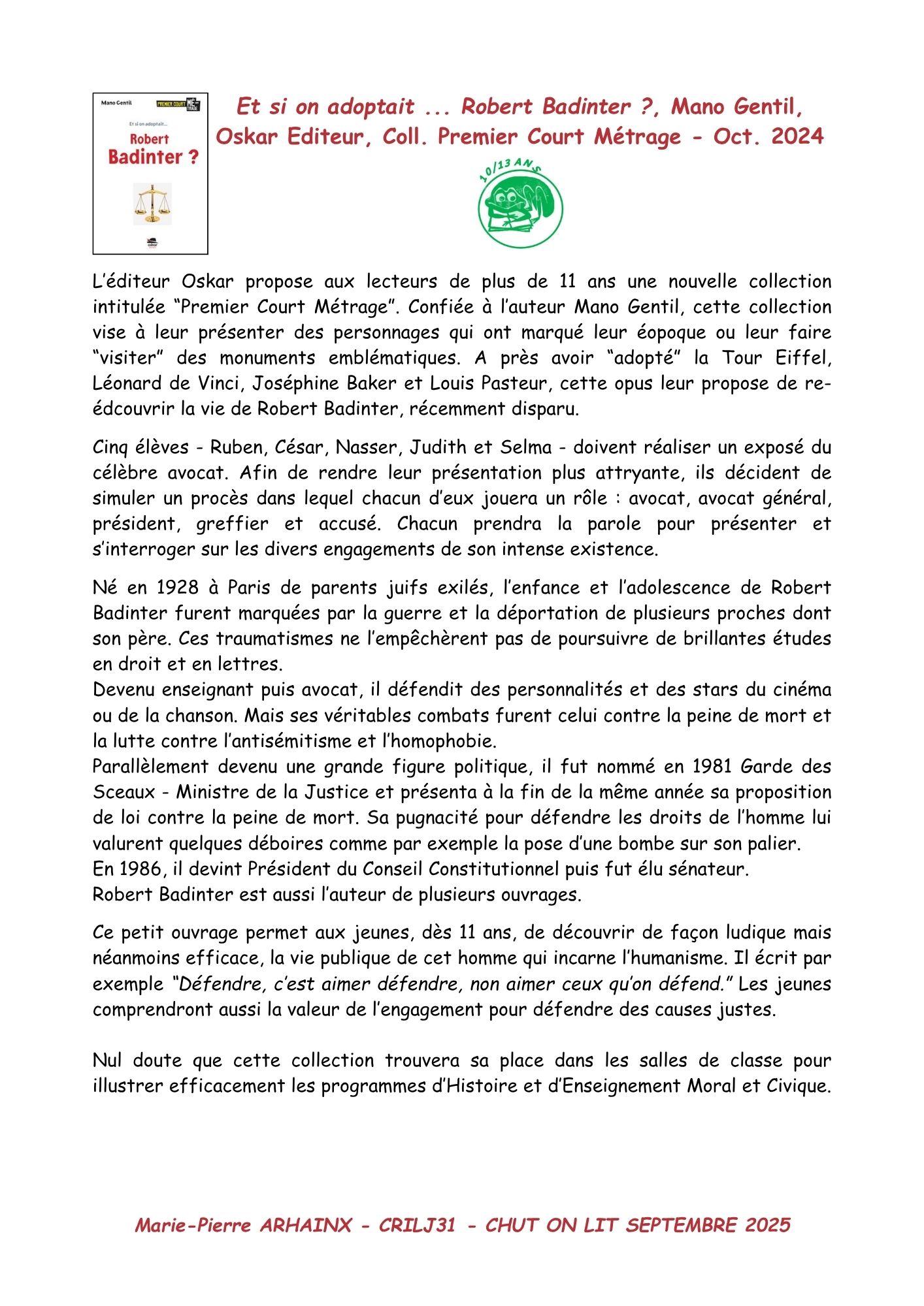 Marqué avec Chroniques, chut on lit, Et si on adoptait Robert Badinter
