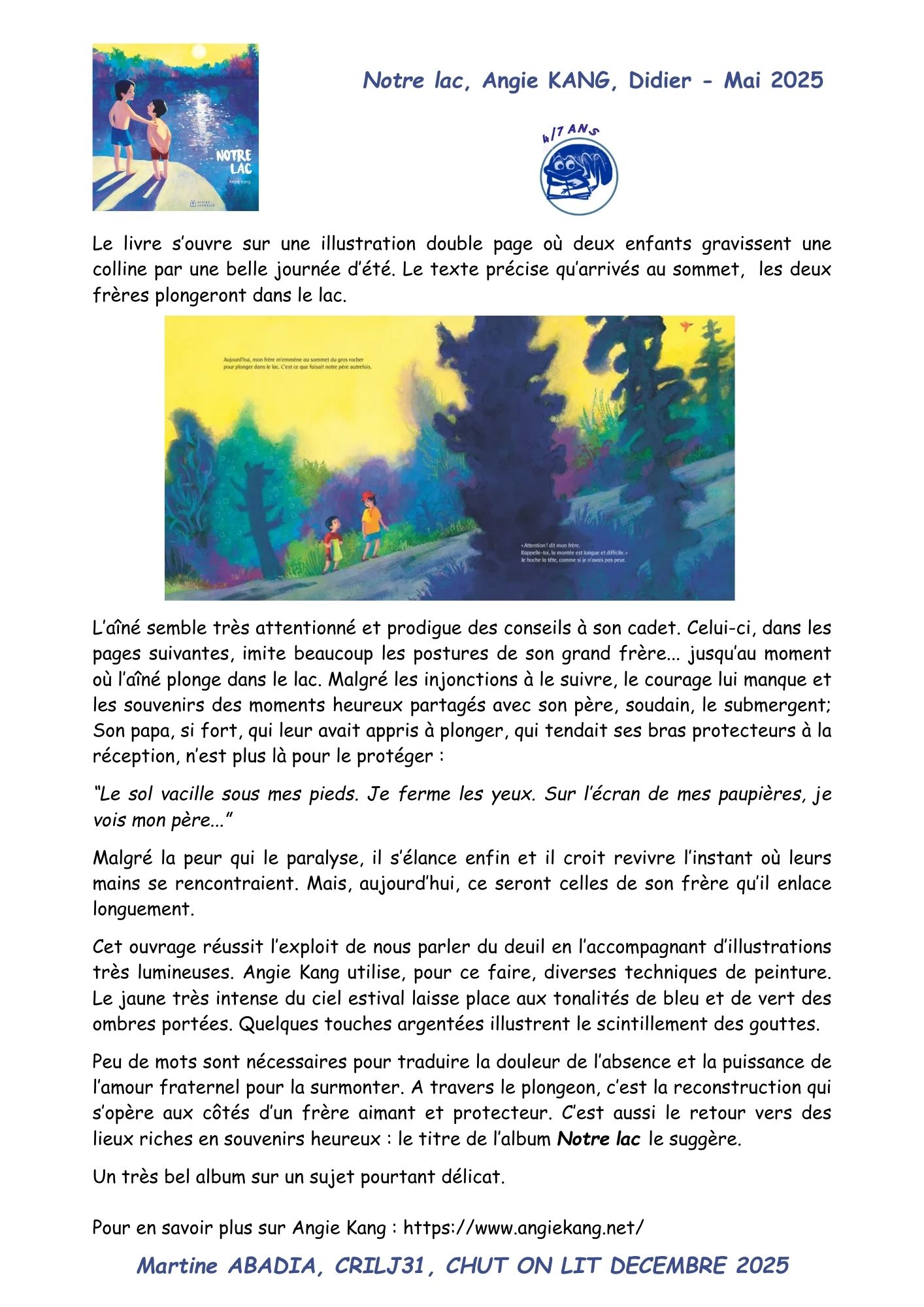 Marqué avec chut on lit, Notre lac, nouveautés