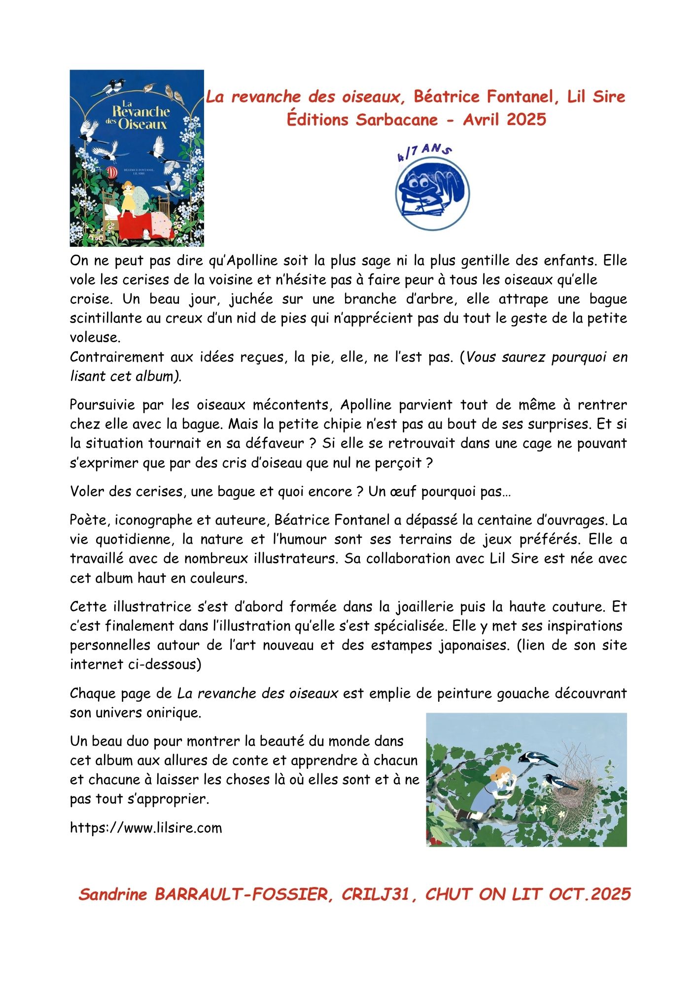 Ce contenu a été publié dans Coups de coeur, LIVRES a LIRE, avec comme mot(s)-clé(s) Chroniques, chut on lit, la revanche des oiseaux. Vous pouvez le mettre en favoris avec ce permalien.