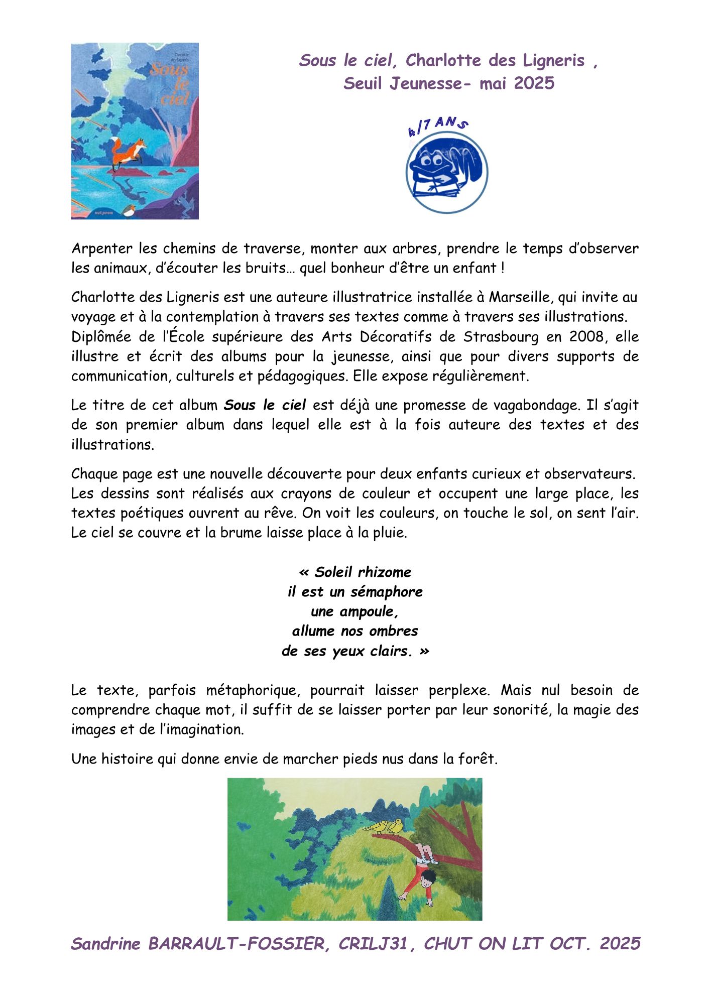 Ce contenu a été publié dans Coups de coeur, LIVRES a LIRE, avec comme mot(s)-clé(s) Chroniques, chut on lit, Sous le ciel. Vous pouvez le mettre en favoris avec ce permalien.